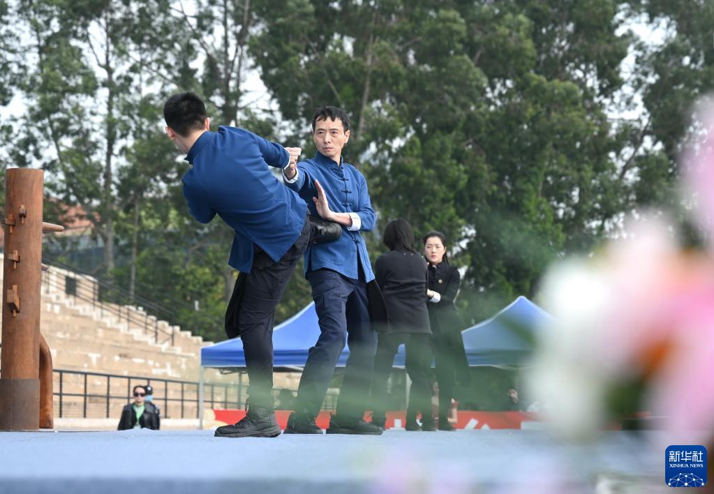 4月8日,表演者在福州大學(xué)城“優(yōu)秀傳統文化進(jìn)校園”開(kāi)幕式上演出詠春拳《龍的傳人》。