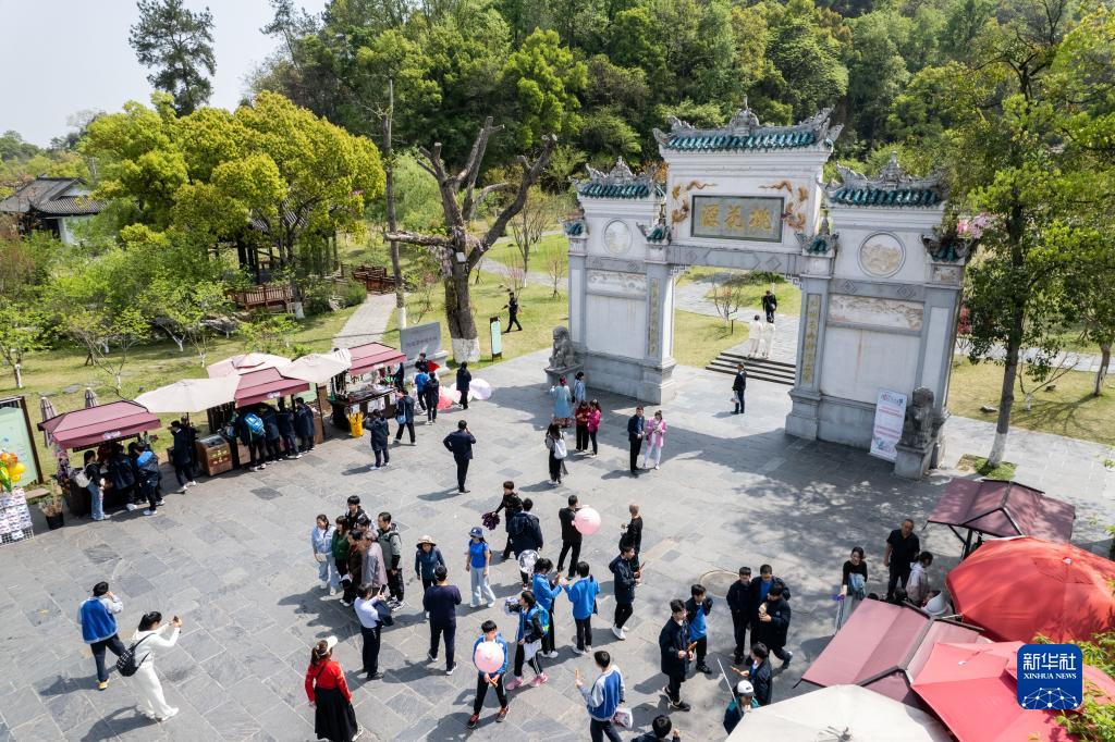 4月8日,不少游客在常德桃花源風(fēng)景名勝區游玩、觀(guān)光(無(wú)人機照片)。