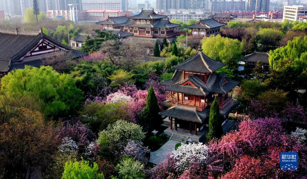 西安青龍寺遺址景區櫻花盛開(kāi)