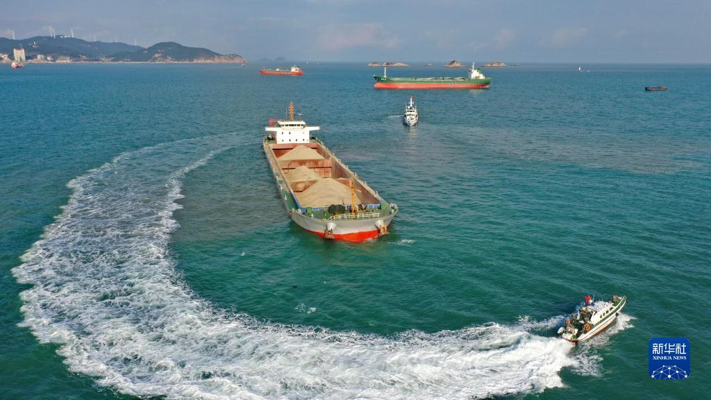 福建福州海警局執法員利用無(wú)人機進(jìn)行航拍監控,艦艇協(xié)同配合,在轄區海域攔截可疑船舶(2021年11月30日攝,無(wú)人機視頻截圖)。