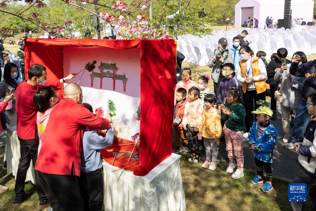 4月8日,孩子們在上海市寶山區顧村公園參加皮影戲現場(chǎng)體驗活動(dòng)。