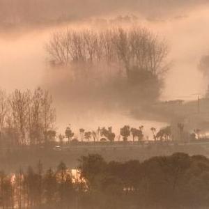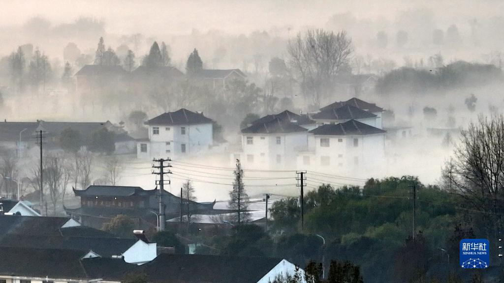 日出時(shí)分,江蘇省泰州市姜堰區的溱湖國家濕地公園及其周邊晨霧繚繞,構成一幅美麗的春晨畫(huà)卷。