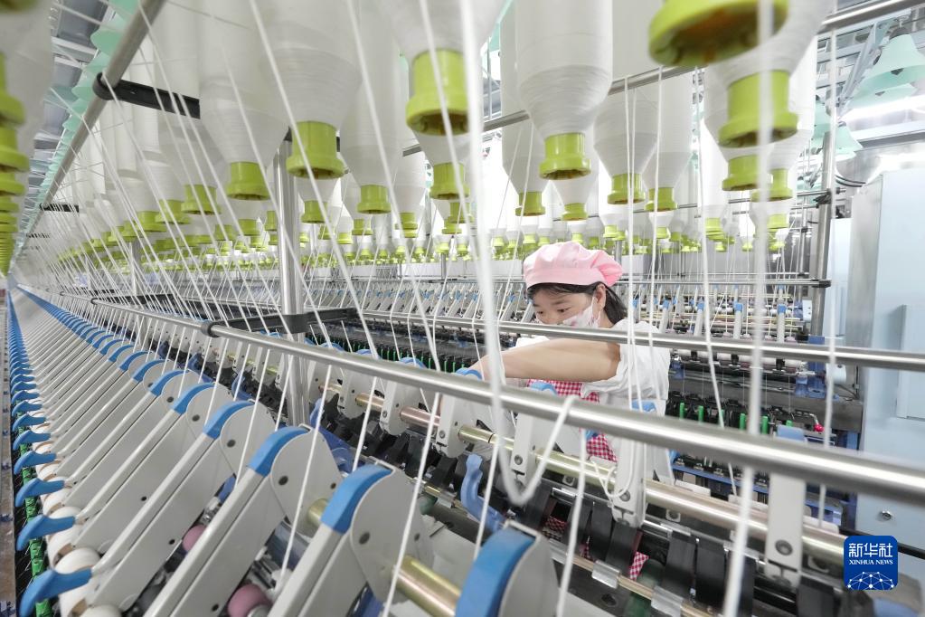 4月9日,工人在河北省青龍滿(mǎn)族自治縣朱杖子鄉朱杖子村一家紡織企業(yè)生產(chǎn)車(chē)間工作。