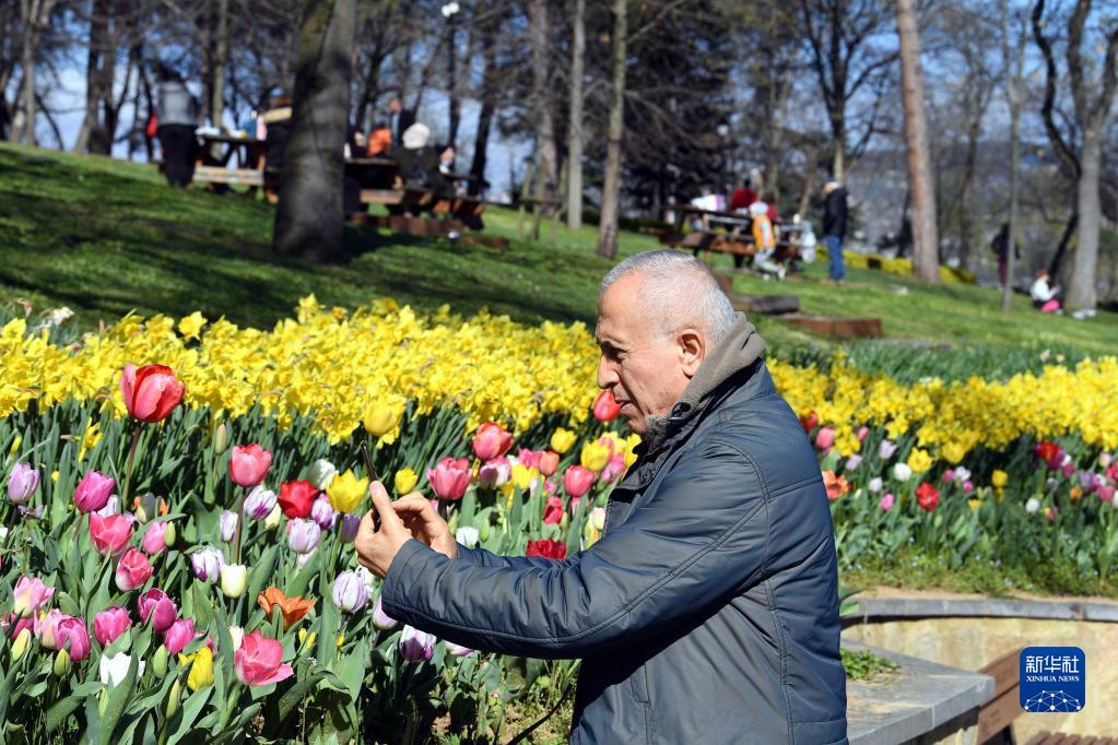 隨著(zhù)氣溫逐漸升高,土耳其最大城市伊斯坦布爾處處鮮花盛開(kāi),不少市民和游客來(lái)到公園游覽踏青。