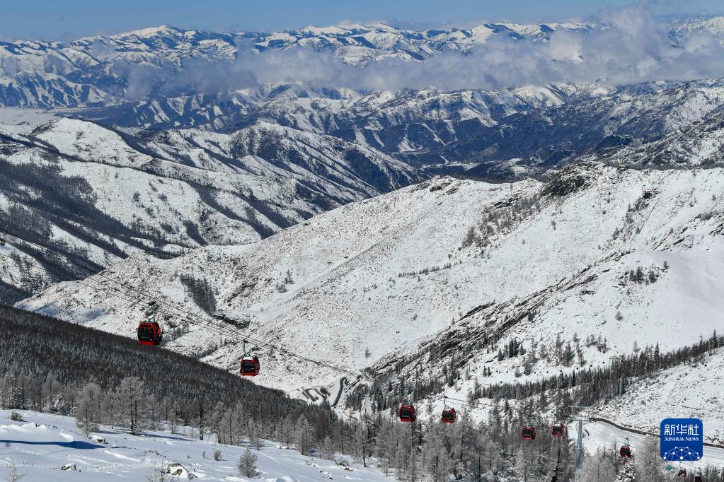 觀(guān)光纜車(chē)在新疆阿爾泰山脈腹地運行(4月9日攝)。