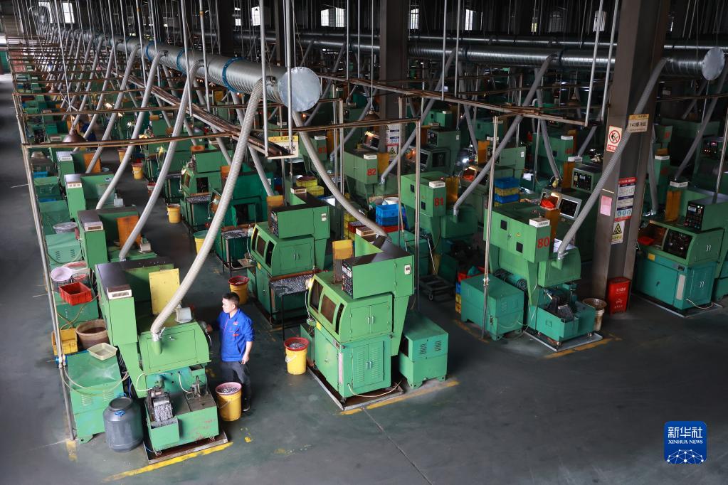 4月10日,搬遷群眾在獨山縣望城社區安置點(diǎn)附近的軸承產(chǎn)業(yè)園區內生產(chǎn)軸承。
