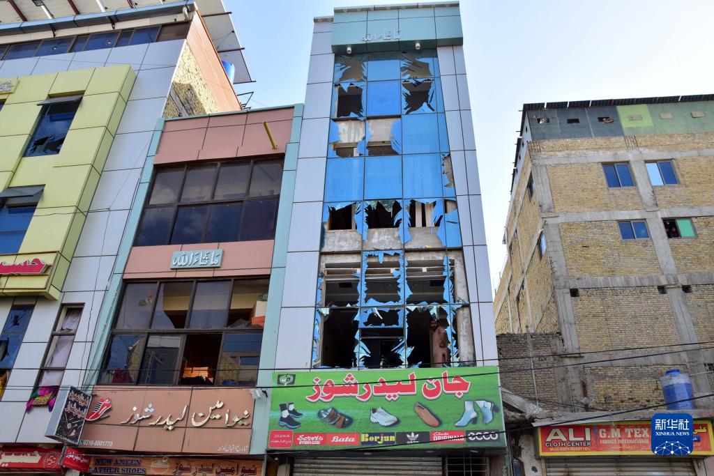 這是4月10日在巴基斯坦西南部俾路支省首府奎達拍攝的在爆炸中受損的建筑。