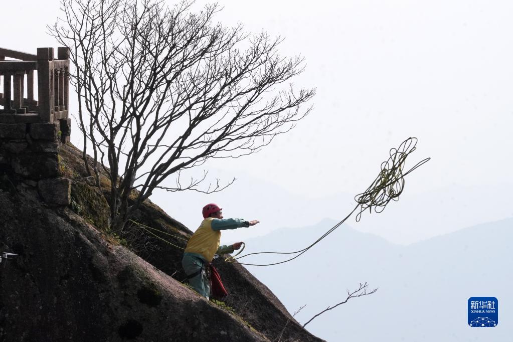 在安徽黃山風(fēng)景區,有這樣一群特殊的環(huán)衛工,他們常年攀爬在懸崖峭壁間清理垃圾。玉屏環(huán)衛所的李培生是他們中的一員,20多年來(lái),李培生累計放繩長(cháng)度達1800公里,除了巡查并清理垃圾,還經(jīng)常幫助游客撿拾掉下懸崖的物品,2012年被評為“中國好人”。黃山風(fēng)景區一共有18名像李培生這樣的放繩工,他們用辛勤的汗水守護著(zhù)黃山的美麗。