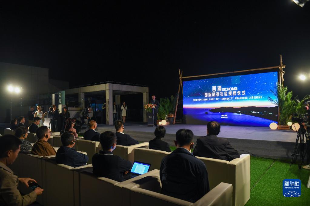 4月10日,國際暗夜協(xié)會(huì )執行主席拉斯金·肯德?tīng)枴す乩凇拔饔繃H暗夜社區”授牌儀式上致辭。