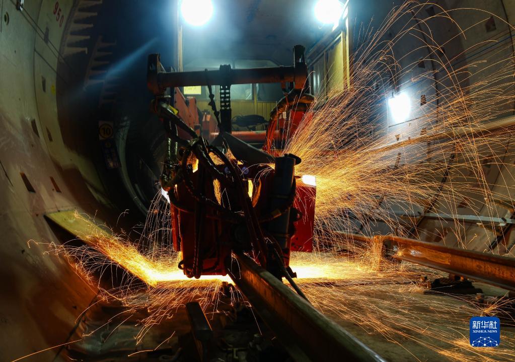 4月11日,自動(dòng)焊接車(chē)在廣州地鐵11號線(xiàn)南石路站進(jìn)行長(cháng)軌焊接作業(yè)。