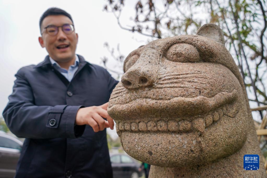 4月6日,彭銳在介紹文創(chuàng )產(chǎn)品“樹(shù)山守”。 新華社記者 李博 攝