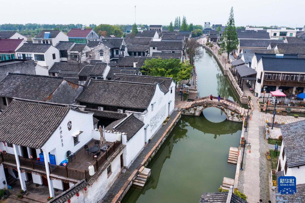 4月11日拍攝的織里鎮義皋村古村落景區(無(wú)人機照片)。