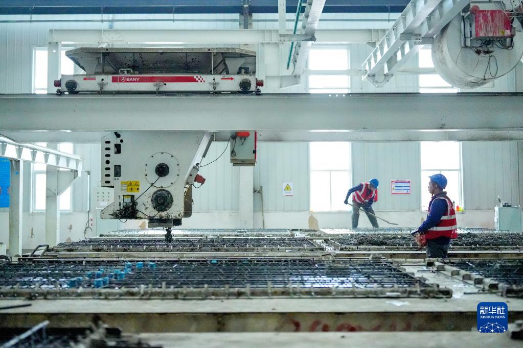 4月11日,河北省玉田縣一家裝配式建筑制造企業(yè)的工人在生產(chǎn)線(xiàn)上操作機器。