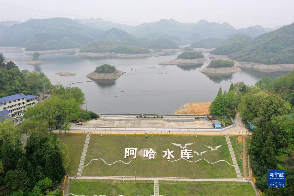 4月11日拍攝的阿哈水庫大壩(無(wú)人機照片)。