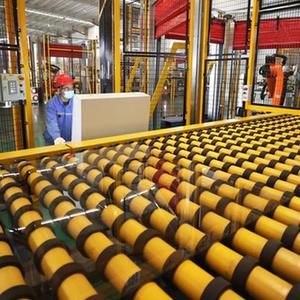 4月11日,在永清縣一家超薄玻璃生產(chǎn)企業(yè),工人在查看玻璃堆垛數據。