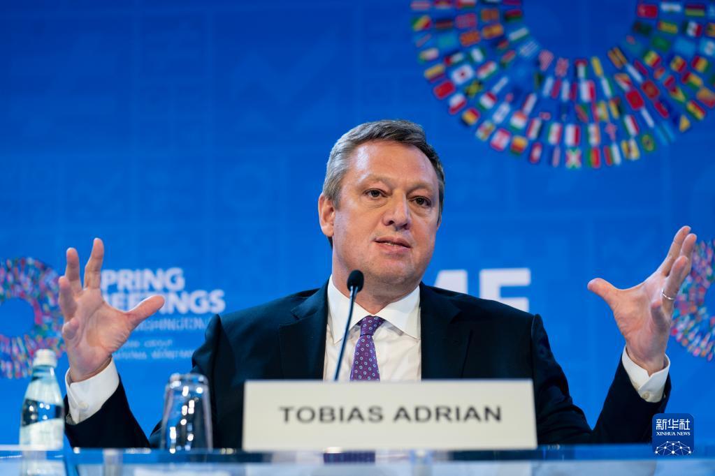 4月11日,在美國華盛頓,IMF貨幣與資本市場(chǎng)部主任托比亞斯·阿德里安出席記者會(huì )。