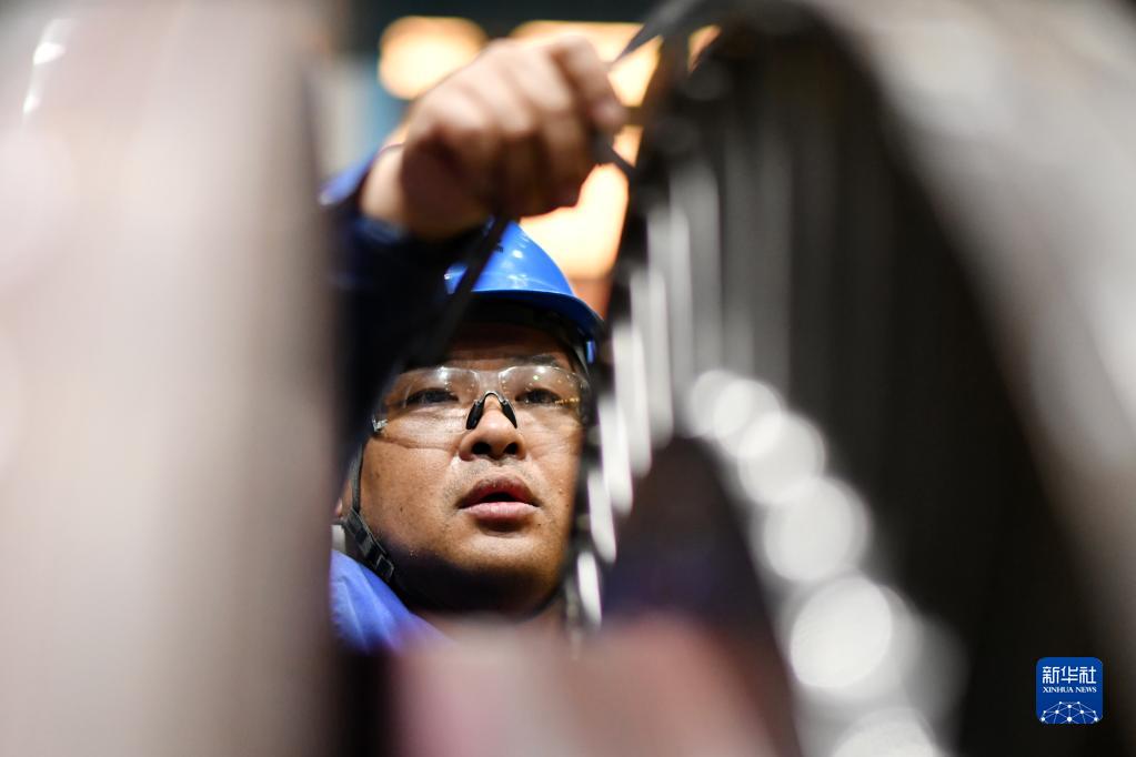 4月10日,工人在哈電集團哈爾濱汽輪機廠(chǎng)有限責任公司車(chē)間內生產(chǎn)作業(yè)。