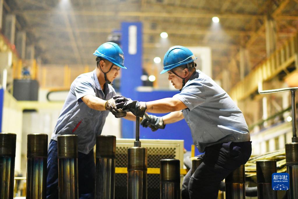 4月10日,工人在哈電集團哈爾濱汽輪機廠(chǎng)有限責任公司車(chē)間內生產(chǎn)作業(yè)。