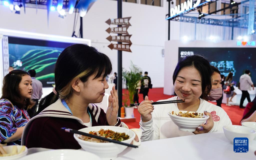 4月10日,參觀(guān)者在消博會(huì )現場(chǎng)品嘗南昌拌粉。