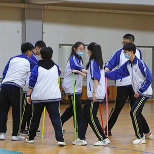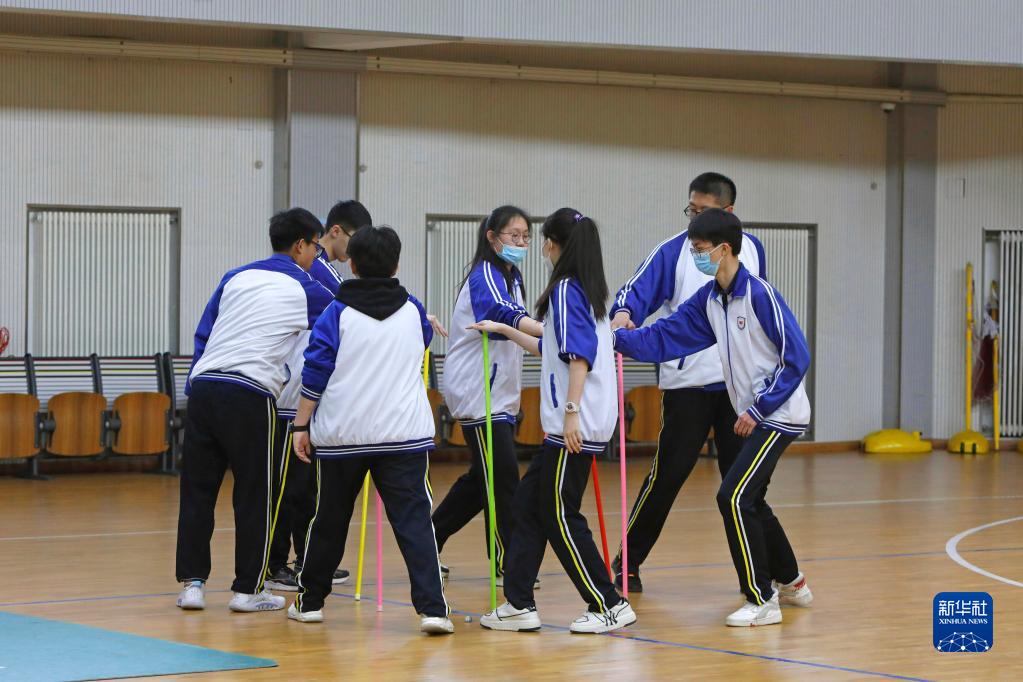 4月12日,大連市第十一中學(xué)學(xué)生在體育館上心理團體輔導課。
