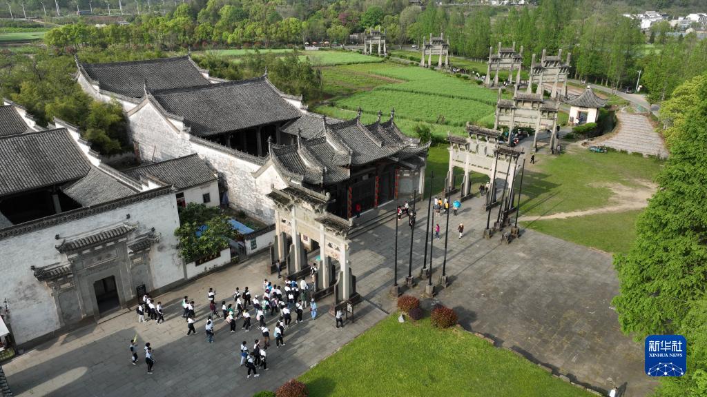4月12日,游客在安徽省黃山市歙縣棠樾牌坊群景區參觀(guān)(無(wú)人機照片)。
