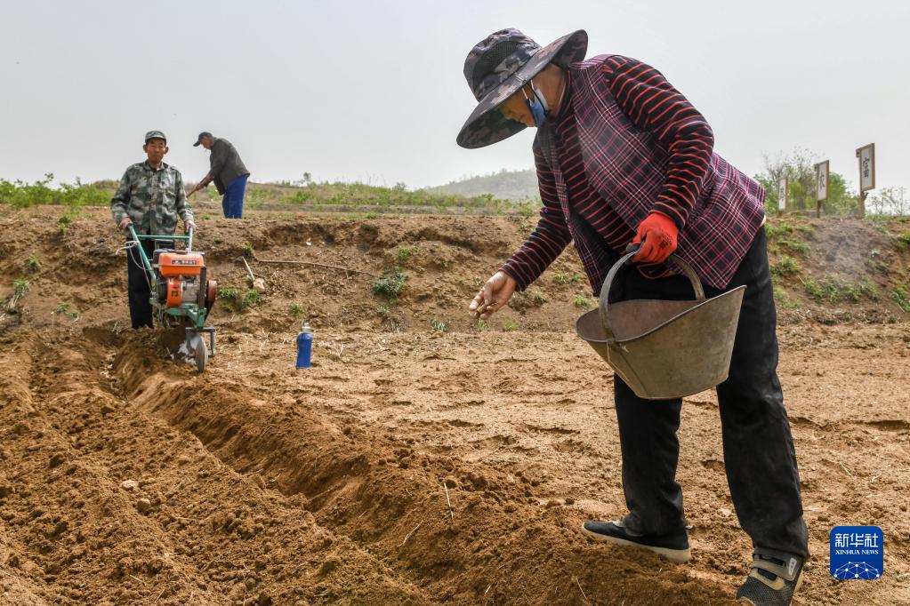 4月12日,泰安市岱岳區耿莊村農業(yè)合作社成員在播種黃精。
