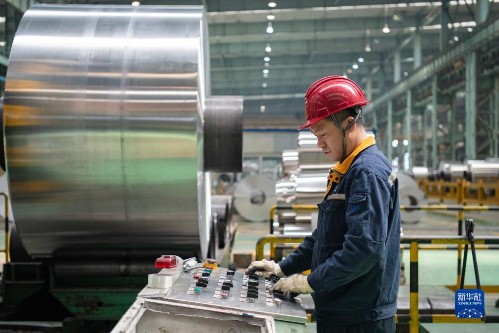 4月13日,在中鋁集團東北輕合金有限責任公司,工人在生產(chǎn)廠(chǎng)區作業(yè)。