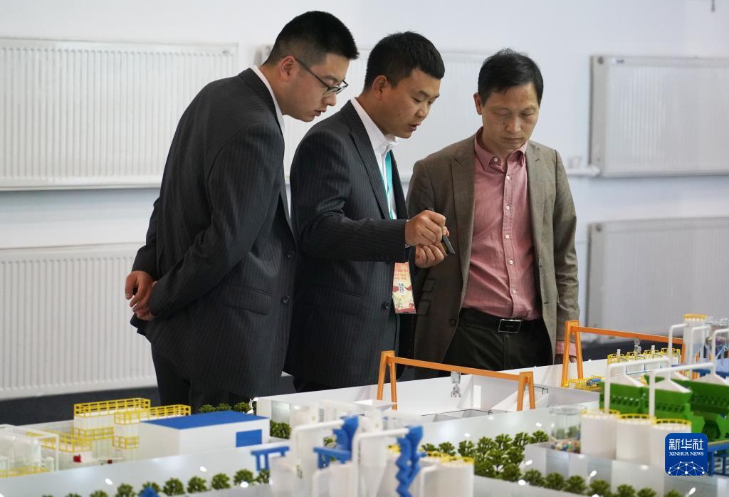 4月13日,在第十一屆中國“城市礦產(chǎn)”博覽會(huì )現場(chǎng),一家企業(yè)的工作人員(中)與觀(guān)眾交流。