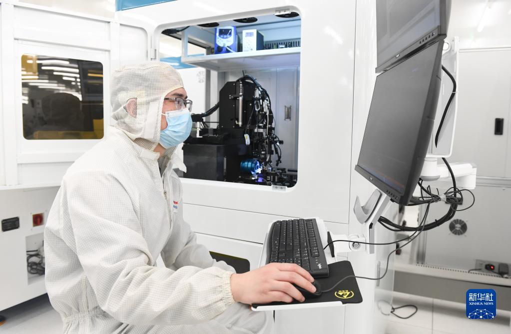 技術(shù)人員在光模塊生產(chǎn)線(xiàn)作業(yè)(4月11日攝)。