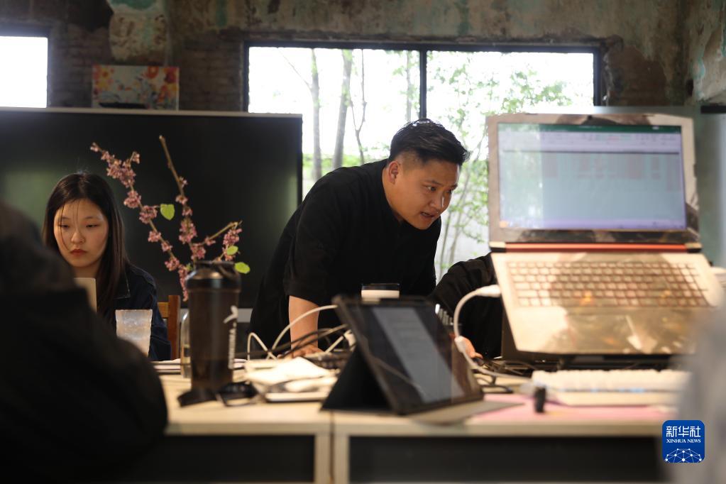 4月12日,程鑠欽和創(chuàng )業(yè)團隊成員在辦公室內交流。