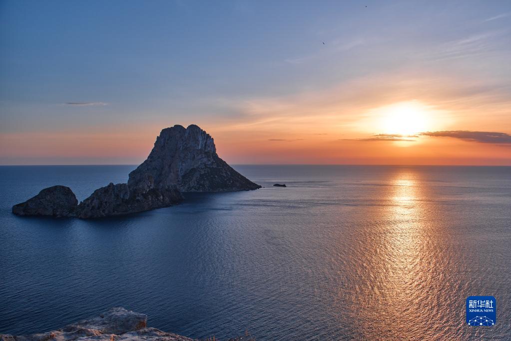 這是4月9日在西班牙巴利阿里群島伊維薩島拍攝的日落。