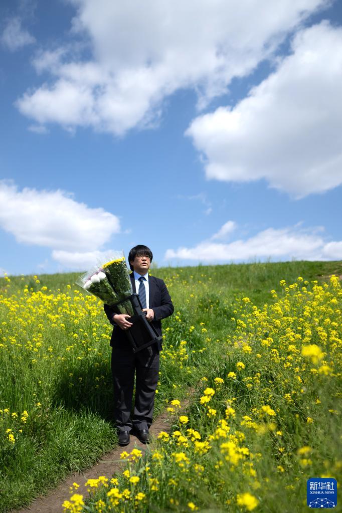 在日本埼玉縣三鄉市,小西武準備開(kāi)車(chē)去給訂貨花店送花時(shí)路過(guò)一片花田(4月3日攝)。在日本的埼玉縣,小西武2022年創(chuàng )立了自己的花卉公司,從中國云南進(jìn)口鮮切花,銷(xiāo)售給分銷(xiāo)商、鮮花加工廠(chǎng)以及花店。他最近一批進(jìn)口鮮花來(lái)自云南開(kāi)遠。