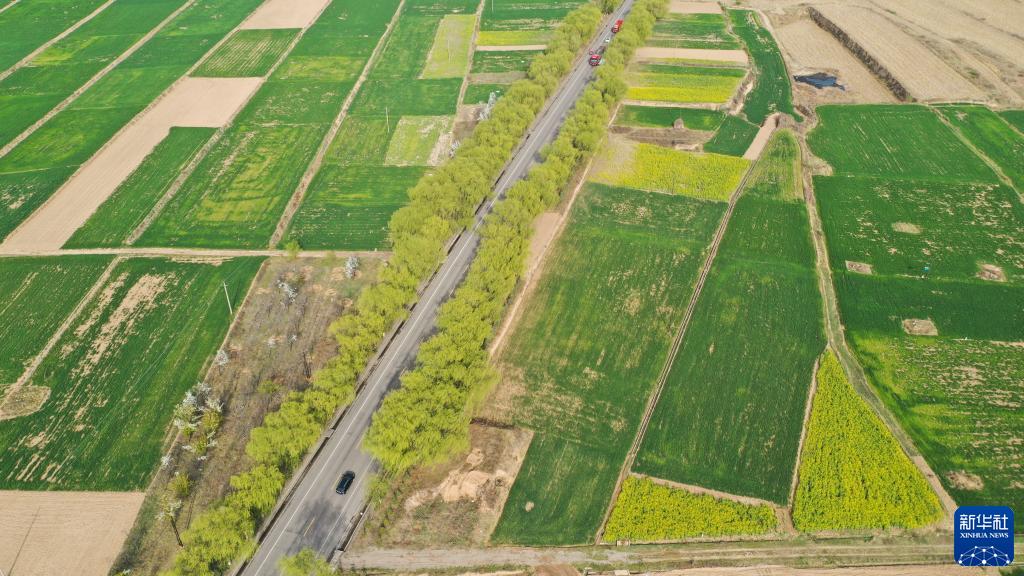 這是4月13日拍攝的甘肅省平?jīng)鍪谐缧趴h錦屏鎮境內的田野(無(wú)人機照片)。
