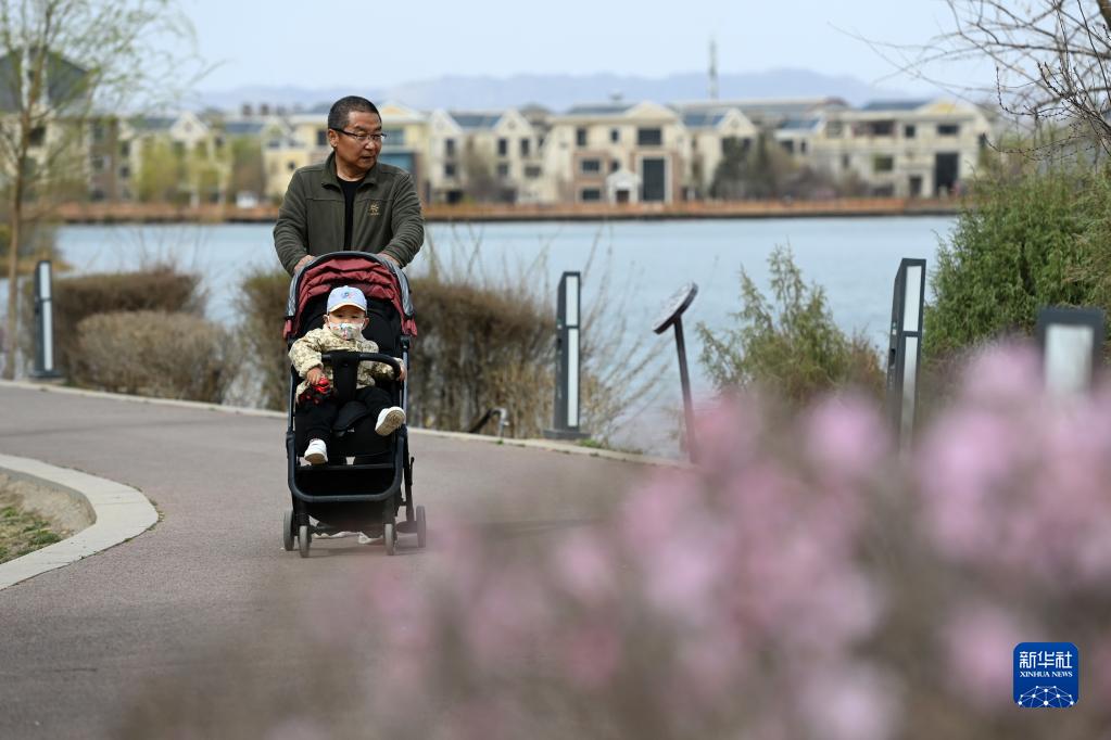4月13日,市民在張掖市蘆水灣生態(tài)景區內休閑散步。