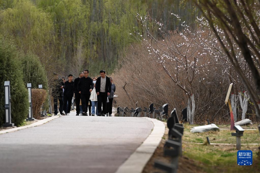 4月13日,游客在張掖市蘆水灣生態(tài)景區內參觀(guān)游覽。