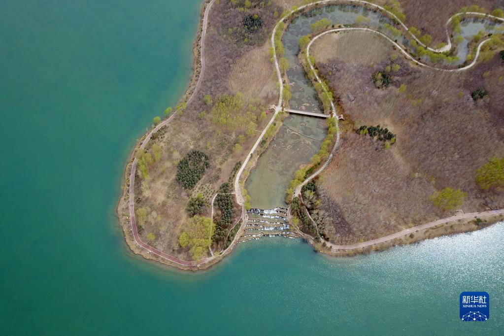 這是4月13日拍攝的張掖市蘆水灣生態(tài)景區內春日景色(無(wú)人機照片)。