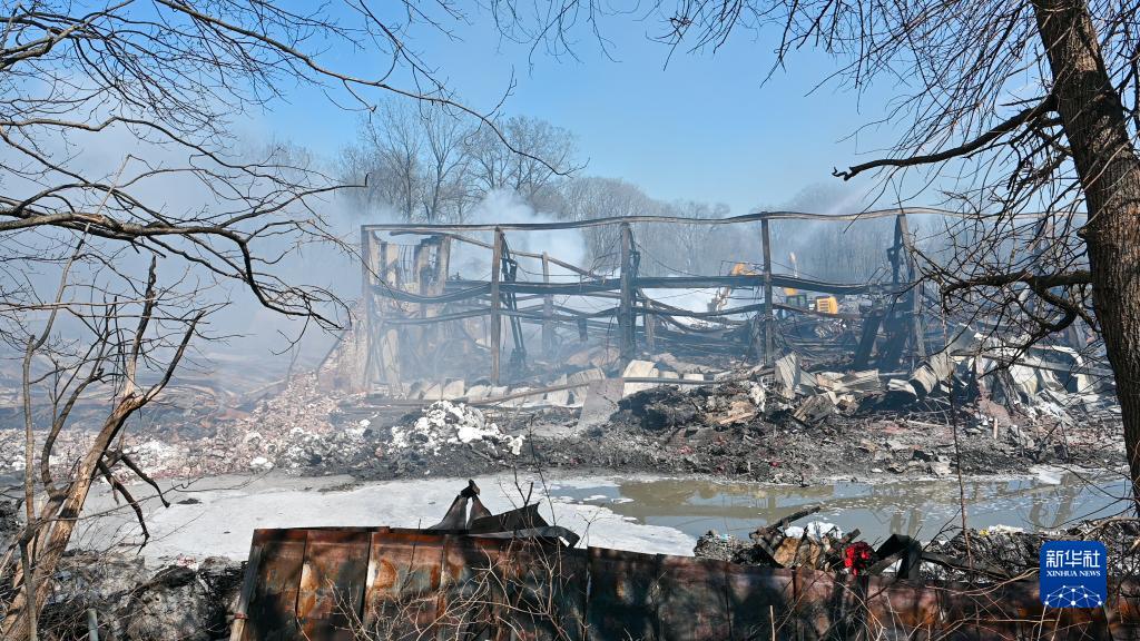 這是4月13日拍攝的美國印第安納州發(fā)生火災的回收廠(chǎng)。