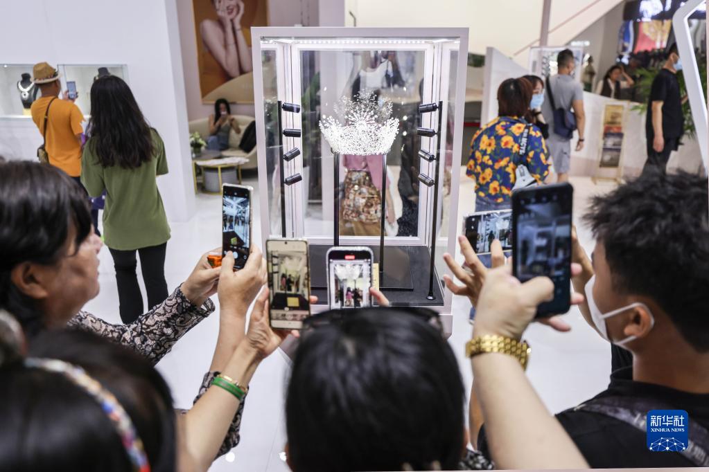 4月14日,觀(guān)眾在消博會(huì )現場(chǎng)拍攝鉆石展品。