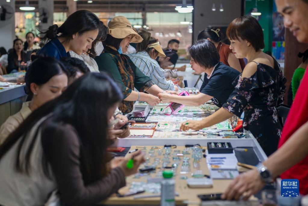 云南省德宏傣族景頗族自治州瑞麗市地處中緬邊境,是我國重要的珠寶玉石集散地之一。近日正值潑水節,到德宏州旅游的游客大幅增加,瑞麗市的珠寶玉石市場(chǎng)、直播基地一派繁忙景象,旅游熱帶動(dòng)珠寶銷(xiāo)售熱。