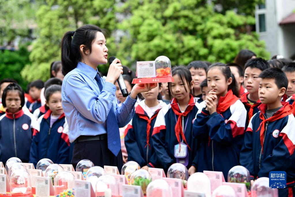 4月14日,檢察干警在貴州省黔東南苗族侗族自治州黃平縣舊州鎮中心小學(xué)為學(xué)生講解預防毒品知識。