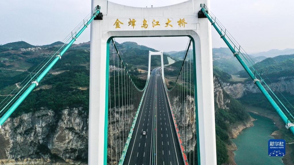 建設中的貴金古(貴陽(yáng)經(jīng)金沙至古藺)高速金烽烏江大橋(4月12日攝,無(wú)人機照片)。