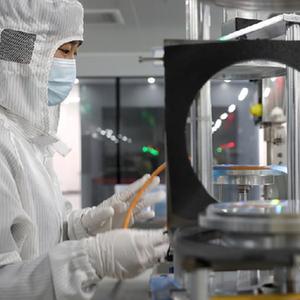 4月14日,一位工人在江蘇省射陽(yáng)縣江蘇暖陽(yáng)半導體科技公司LED芯片生產(chǎn)車(chē)間工作。