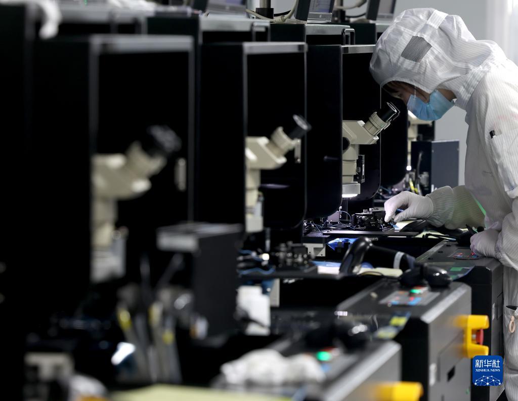 4月14日,一位工人在江蘇省射陽(yáng)縣江蘇暖陽(yáng)半導體科技公司LED芯片生產(chǎn)車(chē)間工作。