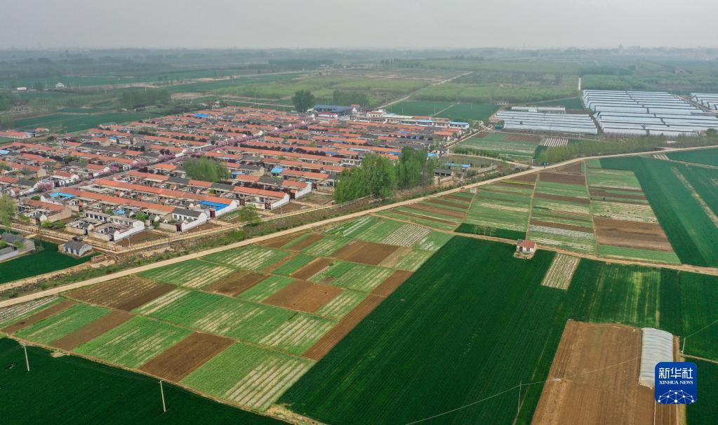 這是4月14日拍攝的山東省泰安市岱岳區范鎮鄭寨子村景象(無(wú)人機照片)。