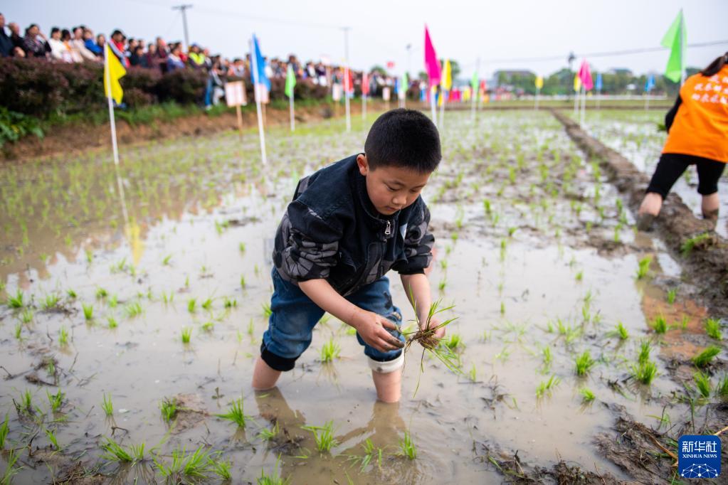 當日,在湖南省長(cháng)沙市寧鄉市灰湯鎮花果山村舉行的農耕民俗文化節學(xué)生研學(xué)活動(dòng)中,孩子們通過(guò)開(kāi)展稻田插秧、捉泥鰍等“農趣” 比賽,走進(jìn)田間地頭,感受勞動(dòng)帶來(lái)的艱辛與快樂(lè )。