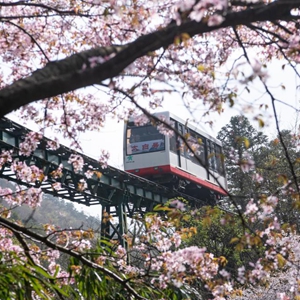 這是4月12日在江西省九江市廬山風(fēng)景區三疊泉拍攝的纜車(chē)。