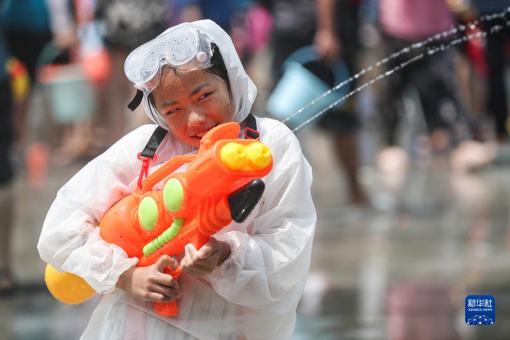 4月15日,人們在云南省西雙版納傣族自治州景洪市潑水廣場(chǎng)潑水狂歡。