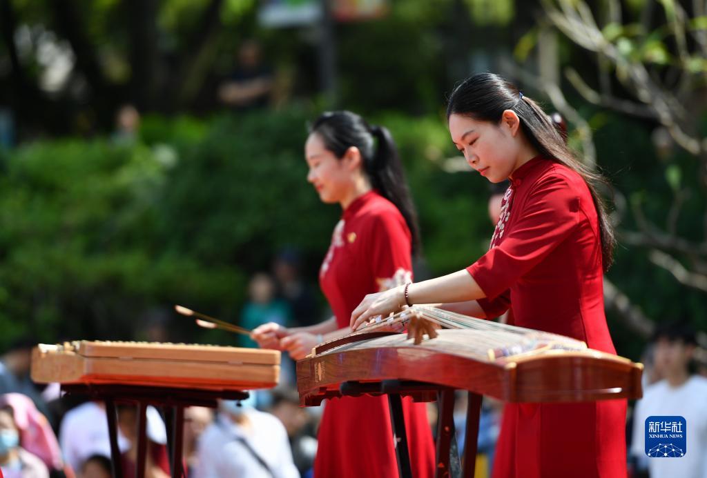 4月15日,演員在2023年福州西湖上巳節啟動(dòng)儀式現場(chǎng)表演中國傳統樂(lè )器。