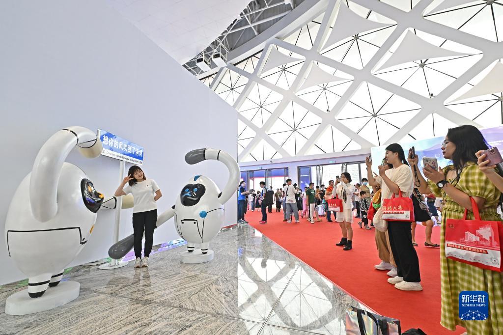 4月15日,參觀(guān)者與第三屆消博會(huì )吉祥物合影。