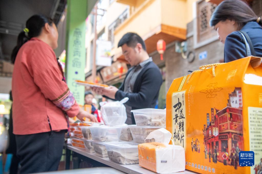 4月13日,在重慶市石柱縣中益鄉,游客在選購黃精加工產(chǎn)品。